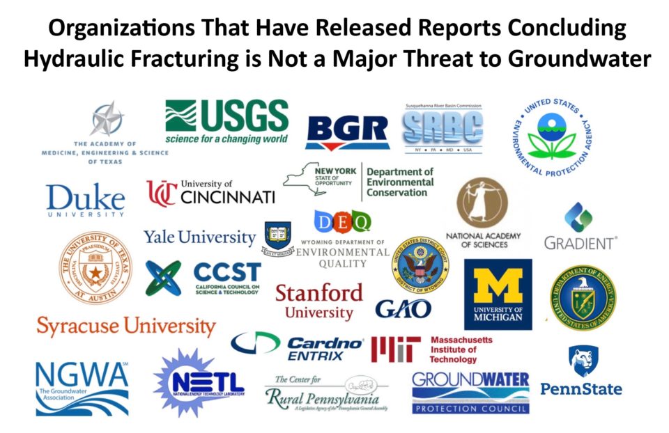 - U.S. Environmental Protection Agency (2016): EPA’s six-year study found nothing to suggest that fracking is a serious risk to groundwater. While the agency made some wording changes to its previous topline finding that fracking has not caused “widespread, systemic” impacts to groundwater, the data in the report did not change from the draft version. The report states, “[H]ydraulic fracturing operations are unlikely to generate sufficient pressure to drive fluids into shallow drinking water zones.” (report link)